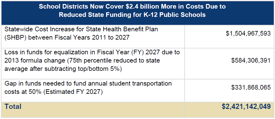 The FY 2027 budget includes $1.2 billion for equalization. A 25-percentage-point increase from the statewide average to the 75th percentile would cost at least $584 million. If the state invested resources to bring all school districts to the 75th percentile, these funds would help to level the playing field and ensure that all districts can provide the same standard of public education statewide.