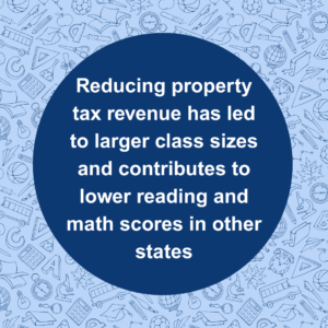 Eliminating homesteaded property taxes would significantly impact K-12 public school funding. Historically, measures reducing property tax revenues in other states led to larger class sizes and higher student-to-teacher ratios, which can negatively affect instructional quality and student success.[14] Studies show revenue losses from property tax cuts contribute to declining student outcomes, specifically in reading and math scores.[15] Reduced property tax revenues can also can cause cuts in staffing and resources for support services such as counselors, social workers, librarians and nurses.[16]