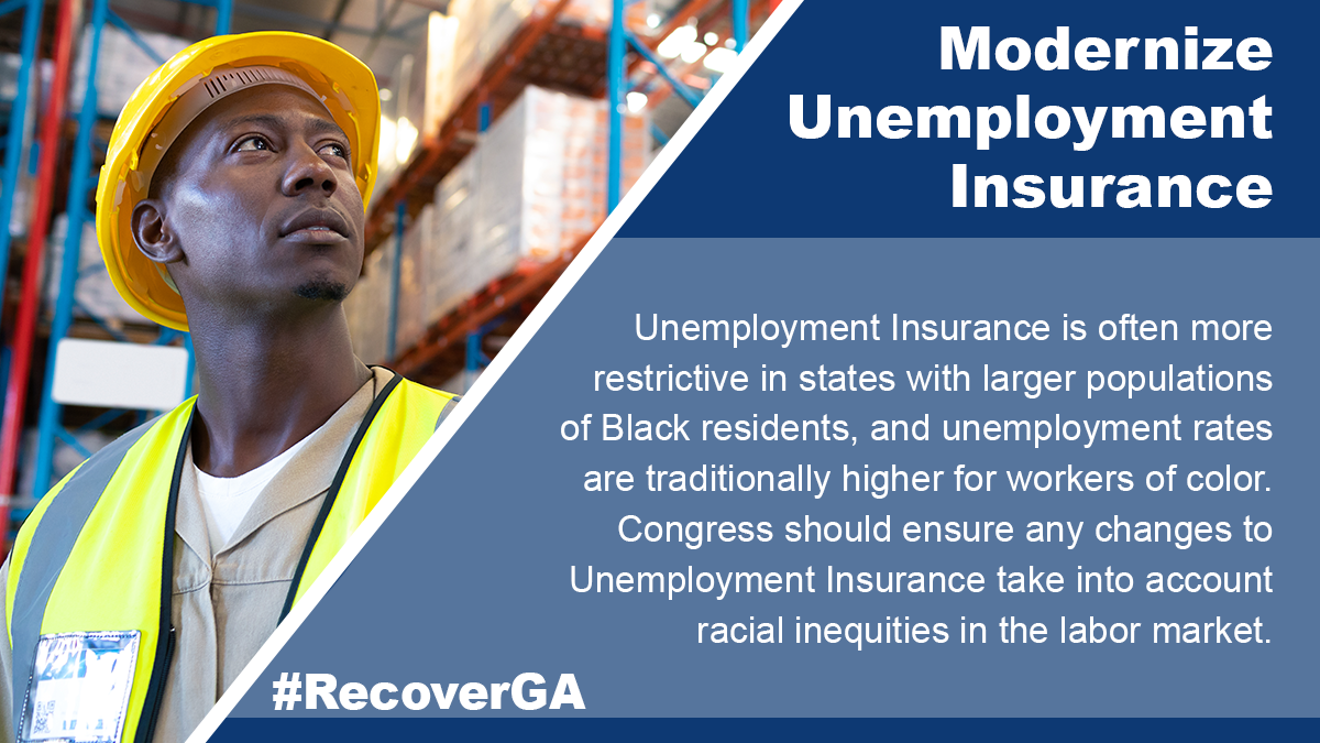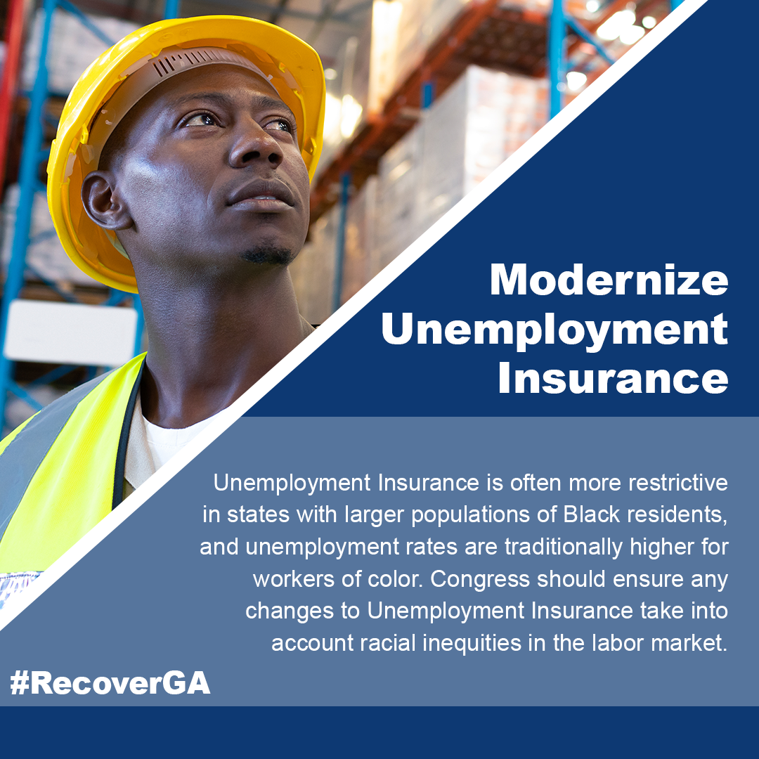 - Click to Tweet: Black & Hispanic/Latinx Georgians are still submitting the highest levels of unemployment claims. Unemployment Insurance reforms must factor in the inequities these groups continue to face in the labor market. Tell Congress to act now: https://bit.ly/3hDFSmQ #RecoverGA