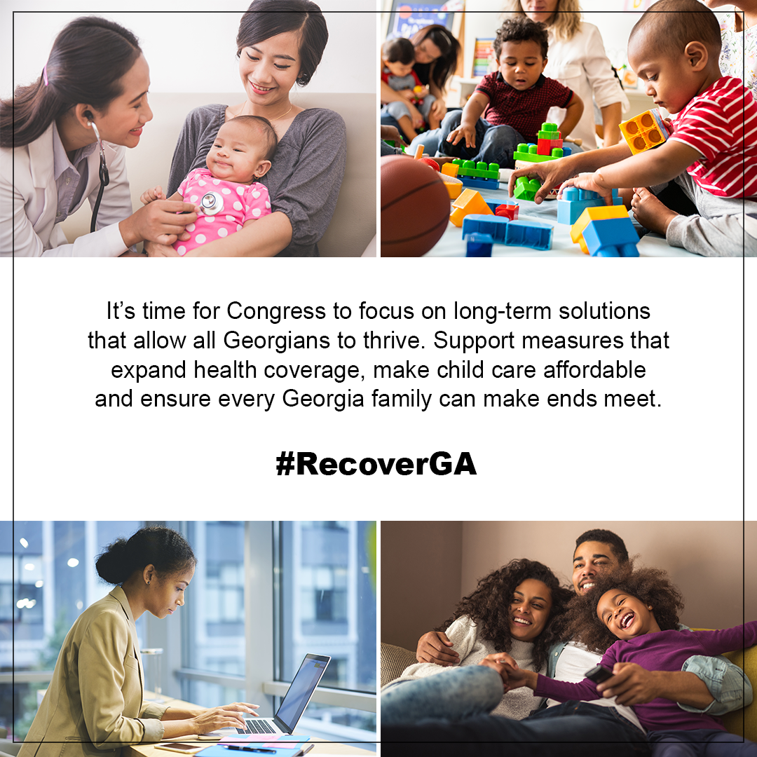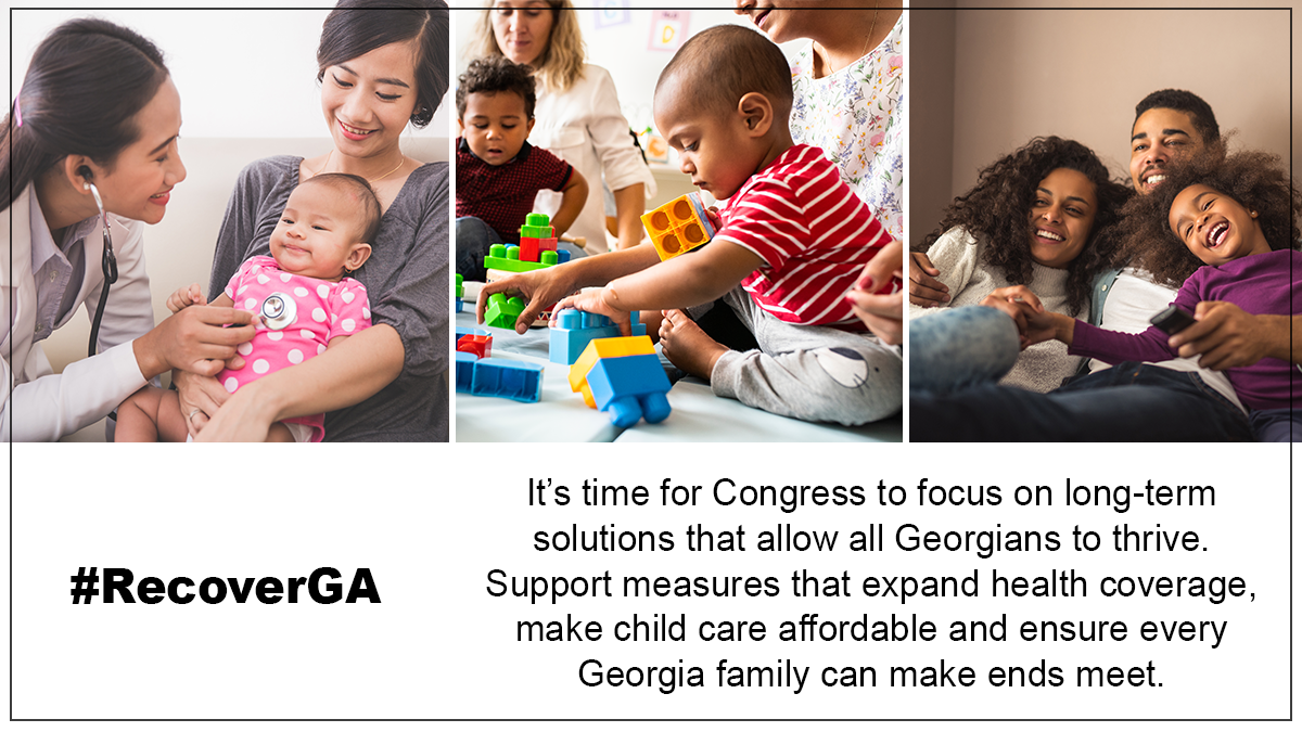 - We need Congress to make health care accessible to all, help families make ends meet and give children the support they need to thrive. Federal recovery plans offer an ambitious recovery agenda that would advance economic security for Georgia’s families statewide. Congress must not only support the recovery plans but also additional solutions to help our families recover and prosper. Tell your lawmakers to maximize these recovery plans and strengthen our safety net now: https://bit.ly/3hDFSmQ #RecoverGA